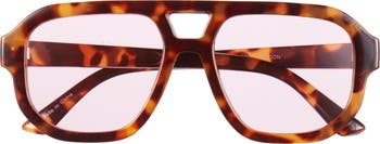 A double bridge brings distinct styling to retro-cool aviator sunglasses fitted with UV-protective lenses.