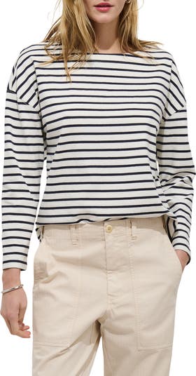Nautical stripes enliven this classic boat-neck top cut from soft cotton.