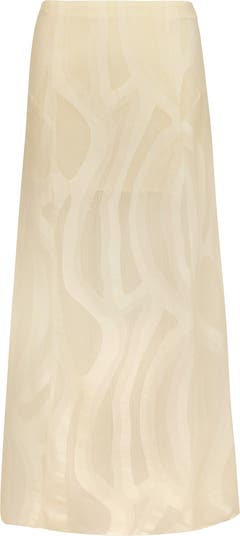 Bring casual elegance to your seaside look with this maxi skirt featuring an artistic semi-sheer design.