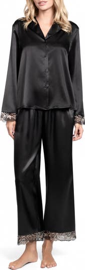 Slip off to dreamland in timeless long-sleeve PJs crafted from luxurious satin and trimmed with delicate, scalloped lace cuffs.
