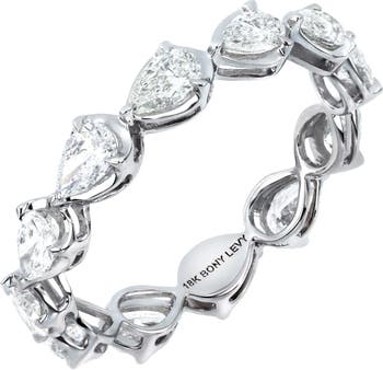 Pear-cut diamonds encircle an elegant ring handcrafted from beautifully polished 18-karat white gold.