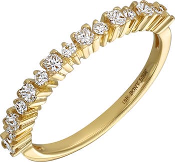 Sculptural bezel settings bring artisanal beauty to a stackable ring handcrafted from 18-karat yellow gold and detailed with sparkling round-cut diamonds.