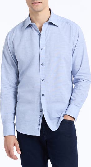 Tailored from crisp cotton, this shirt features pops of contrast that show when you unbutton the collar and roll up the cuffs. Wear it tucked or untucked to go from semiformal to casual without ever sacrificing your style.