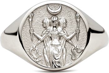 An image of Hecate, the Greek goddess of magic and borders, makes this signet ring an enchanting accessory.