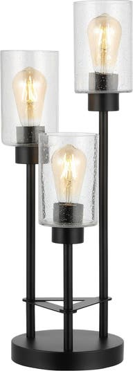Axel Modern 20.5" 3-Light Iron/Seeded Glass Modern Industrial LED Table Lamp, Black