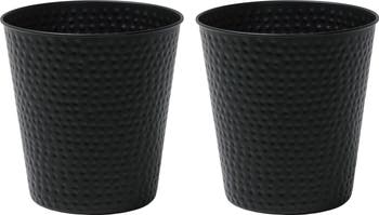 The small size of this minimalist trash can is ideal for the bathroom, bedroom or office. Made from durable steel, it has an all-over hammered texture. Add a modern touch to any space with this stylish trash receptacle.