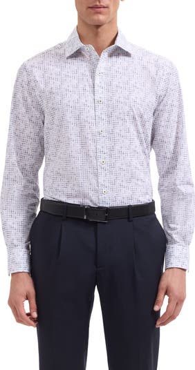 Crisp cotton offers breathable comfort in this trim button-up shirt with a curved hem that looks smart tucked or untucked. Thoughtful touches like mother‑of‑pearl buttons and mitered cuffs that convert to accommodate cuff links complete the polished look.