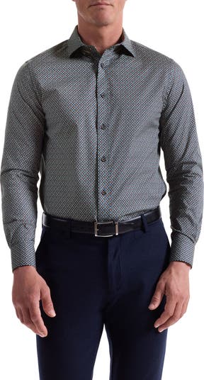 Tailored from crisp, stretch-enhanced cotton, this versatile sport shirt features a pointed collar and a lower hem that stays neatly tucked and looks great if you leave it hanging out. Button the adjustable cuffs for everyday or use your own cuff links to add an elevated-casual finish.