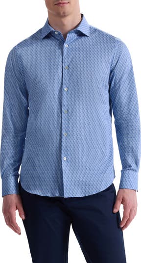 Axel Trim Fit Leaf Print Stretch Cotton Button-Up Shirt