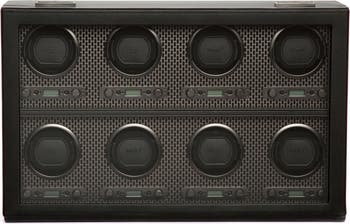 Powder-coated or copper-plated laser cut perforated steel melded with clean, sleek lines. The Axis collection drives a modern, bold look for safekeeping your timepieces. Our patented technology of counting rotations of the axis of your watch guarantees precise Turns Per Day. Bold luxury and faultless design, take the Axis 8 Piece Watch Winder for a spin.