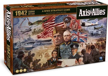Axis & Allies: 1942, Second Edition - Spring 1942, The world is at war! Five major powers struggle for supremacy: Germany and Japan are aligned against the great alliance of the United Kingdom, the Soviet Union, and the United States. Designed for 2-5 players, the game is set in 1942-the historical high-water mark of Axis expansion. Show that you are a brilliant military strategist by planning your attacks, marshaling your forces into embattled territories, and resolving the conflicts. Victory goes to the side that conquers its opponents on the field of battle and liberates or occupies the greatest cities of the world. Change the course of history in a few short hours.