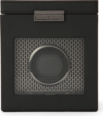 Powder-coated or copper-plated laser cut perforated steel melded with clean, sleek lines. The Axis collection drives a modern, bold look for safekeeping your timepieces. Our patented technology of counting rotations of the axis of your watch guarantees precise Turns Per Day. Bold luxury and faultless design, take the Axis Single Watch Winder with Storage for a spin.