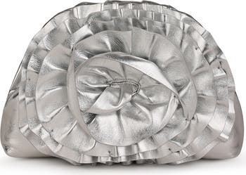 - Frame clutch with rosette applique in silver leather