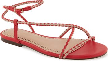 Woven leather straps in two tones shape the intriguing silhouette of this ankle-strap sandal ready for sunny days of exploring.
