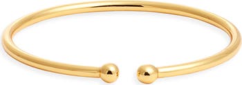 Beaded end points add elegant dimension to this sterling silver bangle plated in warm 18-karat gold.