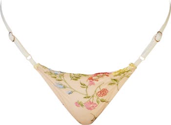 Versatile design with delicate detail. Azalea features intricate floral lace paired with soft pastel yellow straps for a fresh, femenine contrast.