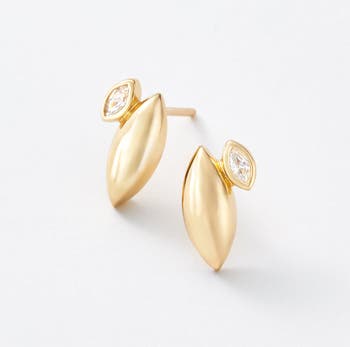 Like an expanding bloom, the Azalea Studs layer a gold petal with a white topaz delicately set to the side. The beautiful asymmetry creates the illusion of two earrings in one.