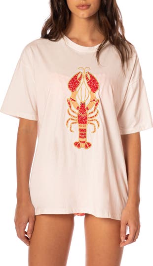 This cool graphic T-shirt with shimmering sequins is just the cover-up style you want when lounging poolside or by the ocean air.
