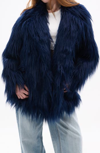Dial up the drama and cozy appeal with this oversized coat made from long-haired faux fur for the ultimate statemate layer.