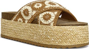 Medallion shapes burst on the crisscross straps of this beautifully woven sandal that'll have you feeling like you're in paradise.