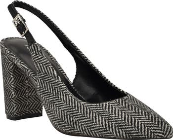 An elegantly pointed toe perfectly balances the walkable block heel on this wardrobe-staple slingback pump finished with a delicate logo buckle.