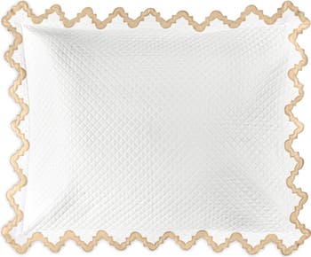 Bordered with a striking zigzag cotton-sateen appliqué, this diamond-quilted sham made from pure cotton with a subtle sheen adds a luxurious touch to any bedroom.