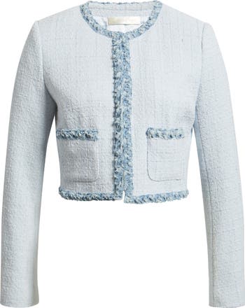 Textured trim creates dimension on this tweed jacket updated in a modern cropped fit.