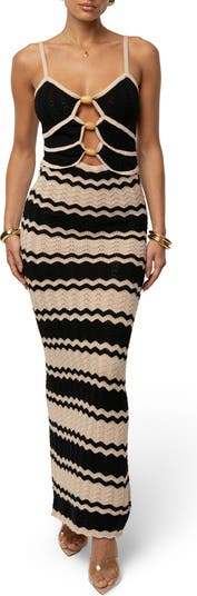 Perfectly paired with sunset cocktails, this super sassy sweater dress shows plenty of skin and will be the topic of toasts.