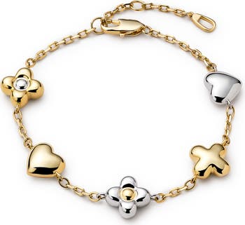 Signature puffy charm motifs line this bracelet in two-tone polish that goes with just about everything.
