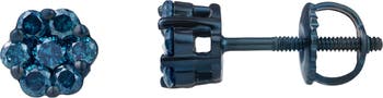 Azure 0.5 Cts Blue Diamond Cluster Studs Blue Rhodium 10K Gold Earrings