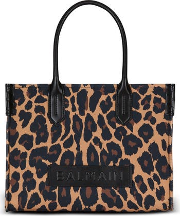 Boldly embossed logo lettering springs in 3D across the front of this superspacious canvas tote covered with wildly ferocious leopard spots.