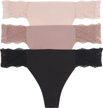 Get the best of both worlds—unbelievable comfort and no panty lines—in this set of three thongs designed with lacy sides and a smooth fit.