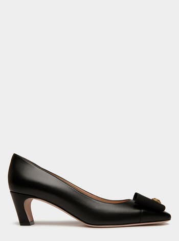 The classic all-black silhouette of this leather pump is finished with an iconic bow from the Bally archives, refreshed with a Crest signifier at the center.
