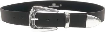 Shining, streamlined hardware brings a Western-influenced vibe to this versatile belt made from supple nappa leather.