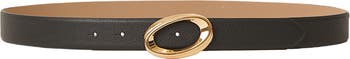 Glossy hardware elevates a versatile belt rendered in rich leather for timeless appeal.