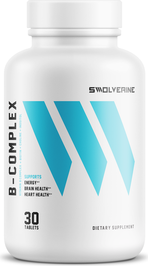 - SWOLVERINE® B‑VITAMIN COMPLEX — Energy Support.* Focus Support.* Metabolism Support.* A vegan, non‑GMO B‑complex designed to support cellular energy production, cognitive function, healthy metabolism, and nervous‑system health—day in, day out. Fully disclosed forms and a convenient once‑daily capsule make it easy to keep your routine consistent. ** Why Choose Swolverine® B‑Complex? → Energy Production* — B‑vitamins act as coenzymes that help convert carbohydrates, fats, and proteins into usable energy (ATP) for training and daily life.*→ Brain & Cognitive Support* — Supports neurotransmitter pathways for mental clarity, focus, and overall cognitive performance.*→ Metabolism & Nutrient Utilization* — Helps break down and use macros efficiently to sustain steady energy levels.*→ Nervous System & Red Blood Cell Support* — Backed by B6, B9, and B12 to support nerve health and normal red blood cell formation.*→ Hair, Skin & Nail Support* — Biotin supports healthy keratin structure for hair, skin, and nails.*→ Vegan & Non‑GMO, Fully Disclosed* — Formulated for label transparency so you know exactly what you’re taking.* Who It’s For → Athletes & High‑Output Days: Support energy metabolism and training readiness.*→ Busy Professionals & Students: Help maintain focus and productive energy throughout long days.*→ Vegetarian/Vegan Lifestyles: Daily B‑support, including B12, to help cover common nutrient gaps.*→ Anyone Building a Solid Daily Stack: A simple foundation for metabolism, brain, and nerve support.* How It Works (At a Glance) B‑vitamins serve as cofactors in hundreds of enzymatic reactions tied to ATP production, neurotransmitter synthesis, methylation, and red blood cell formation.* In practice, that means better support for how you turn food into energy, how your brain and nerves function, and how your body maintains everyday vitality.* Ingredients & Roles (Per Serving) → Vitamin B1 (Thiamine) — Supports carbohydrate metabolism and nervous‑system function.*→ Vitamin B2 (Riboflavin) — Coenzyme for energy pathways (FAD/FMN) with antioxidant support.*→ Vitamin B3 (Niacin / Niacinamide) — Supports NAD/NADP‑dependent energy reactions and skin/nervous‑system health.*→ Vitamin B5 (Pantothenic Acid) — Precursor to coenzyme‑A for fatty‑acid metabolism and synthesis pathways.*→ Vitamin B6 (Pyridoxine) — Supports amino‑acid metabolism, neurotransmitter production, and immune function.*→ Biotin (B7) — Supports keratin infrastructure for hair, skin, and nails; also involved in glucose and fatty‑acid metabolism.*→ Folate (B9) — Supports DNA synthesis, methylation, and normal red blood cell formation.*→ Vitamin B12 (Methylcobalamin) — Supports energy metabolism, neurological function, and red blood cell production.* → Label Transparency* — See Supplement Facts for forms and amounts; no proprietary blends. Potential Benefits* → Daily Energy Support* — Back your body’s ATP production for steady, reliable energy.→ Focus & Cognitive Support* — Help keep mental clar