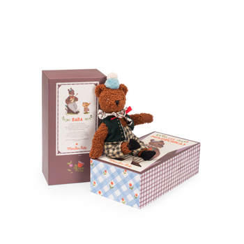 Baba the big bear is a charming articulated doll designed by Lucille Michieli. He loves the scent of jasmine and playing the banjo! Baba promises tender moments and unforgettable adventures for little ones Specifications Color: Multicolore Recommended Age: 0+ Material: Cotton, polyester, plastics PP Size (inches): L: 5,319 x W: 3,349 x H: 10,047 Weight (lbs): 0,165375 Care instructions: Machine washable at 30°C on wool cycle. No tumble dry.