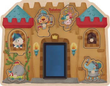 Two-in-one puzzle and stamp set that inspires both problem-solving and creativity for little builders and budding artists. In this medieval adventure, Bababoo and friends® explore a royal castle scene with six beautifully illustrated puzzle pieces that double as wooden stamps. Each piece fits into the puzzle base and can also be used with the included stamp pad to create one-of-a-kind artwork. As children build the scene and stamp their own designs, they develop fine motor skills, spatial awareness, and early problem-solving. The set encourages open-ended exploration, reinforces shape and number recognition, and builds confidence through hands-on play and storytelling. A PlayTales™ card is included, featuring a unique story and themed activities written by a children’s author just for this puzzle. Designed in Europe, the Bababoo and friends® Lion Castle Stamp Game Puzzle is made from high-quality materials for creative play that lasts.