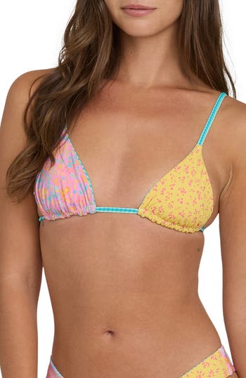 Minimalist triangle slider cups easily adjust for a perfect fit as you lounge by the water in this versatile reversible bikini top.