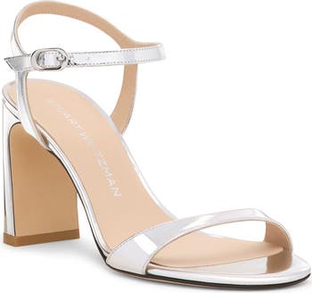 A streamlined silhouette adds timeless sophistication to an ankle-strap sandal updated with a slim block heel for comfort and wearability.