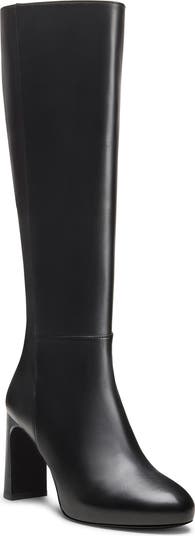 Clean lines and simple detailing bring effortless versatility to this boot crafted from premium leather with hidden platform and stacked heel providing a classic foundation. A side zipper cinches the gracefully contoured silhouette that rises to the knee for dramatic effect and extended coverage when the temperatures cool.