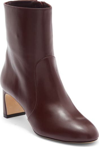 Build out your collection of season-spanning footwear staples with this streamlined bootie featuring a Spanish leather upper and uniquely shaped block heel.