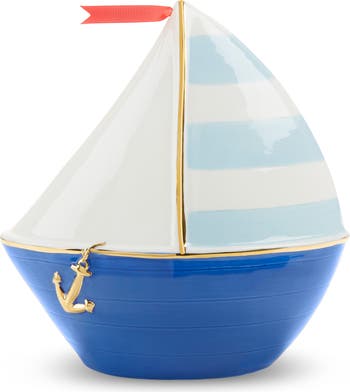 A charming ceramic bank in the shape of a sailboat adds a playful touch to nursery décor while providing smooth sailing for savings.