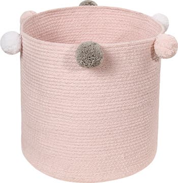 We're all for pompoms! A children's favorite trend that comes as stylish storage. Braided cotton basket with ciruclar base, in two colors: grey with cotton balls in White and pink color and cotton balls in white. A perfect to store little ones' toys and nick-nacks for easy after-play pick-up.