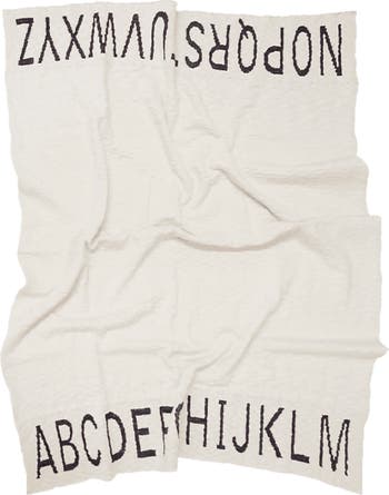 Knitted cotton blanket in natural colour with Alphabet letters in black colour at borders