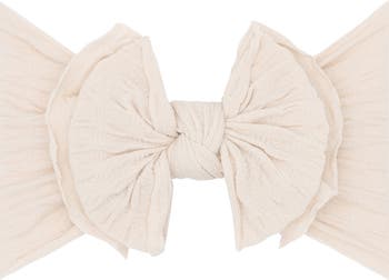 A bold bow provides an adorable embellishment for a waffle-knit headband.