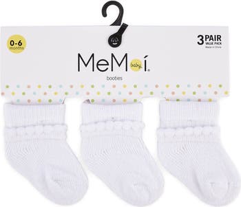 When it comes to baby's first booties, you only want the best. That's where MeMoi's Baby Bootie Socks come in. This 3-pack of soft, cuddly socks is made from the finest cotton blend so your infant is comfortable all day long. Each sock has a plain, dependable foot with a folded, fringed cuff for a bit of spunk to baby's outfit. This 3-pack comes in multiple color sets, so you can stock up for every occasion.