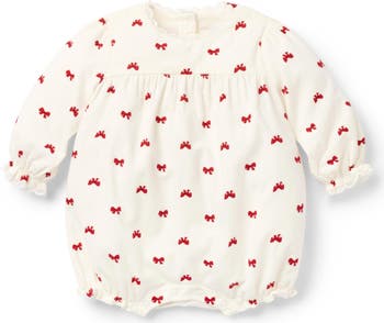It's a fashionable first holiday, all wrapped up with a bow (print). Designed in soft corduroy with ruffle cuffs and shirred details too.