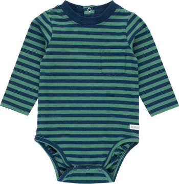 Your little dude will be cute and comfortable in this long sleeve cotton knit bodysuit. Nickel-free snaps make changing quick and easy.