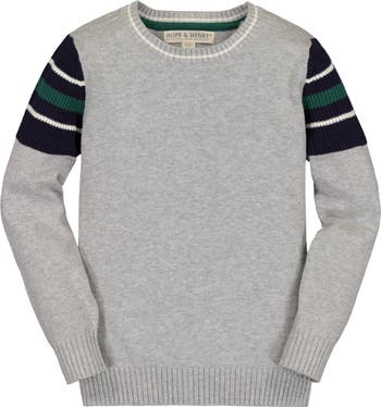 Our cozy and cool crew neck sweater is crafted in soft organic cotton and will keep your guy warm all season long. Features athletic-inspired stripe piecing at the shoulders in an easy pullover silhouette. It's a sweater he'll love for years to come.